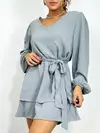 Vestido Curto em Malha Romantic Manga longa com Gola Boba e Plissado Adriele Ref Vestido Curto em Malha Romantic Manga longa com Gola Boba e Plissado Adriele Ref